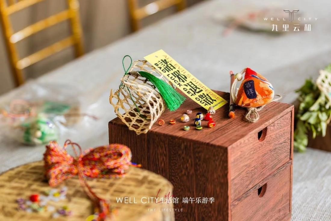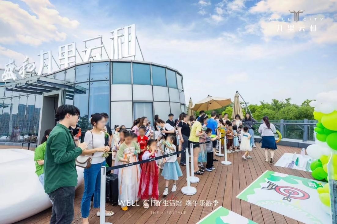 端午節,當登高望遠,或觀龍舟競渡,或遍嘗美食。端午節期間,沿海集團盛和房產九里云和項目舉辦端午樂游活動,坐落于通揚運河與通呂運河的臨時售樓處為陣地,帶來雄黃點額、皮影戲、五彩繩編織等多樣體驗活動,將客戶代表的生活理想與審美追求,融入傳統節日的內容與儀式感中。